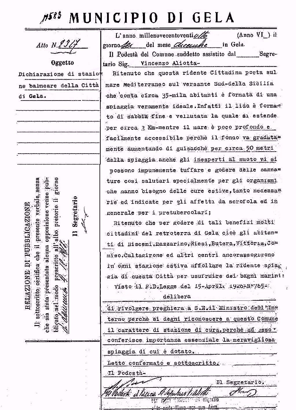 deliberazione del 1928 il podestà Antonino